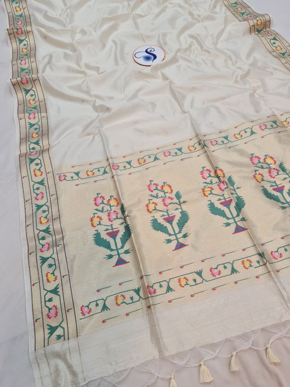 Product Highlights: Weaving aswali Border and Swan Motif, All-Over Butta