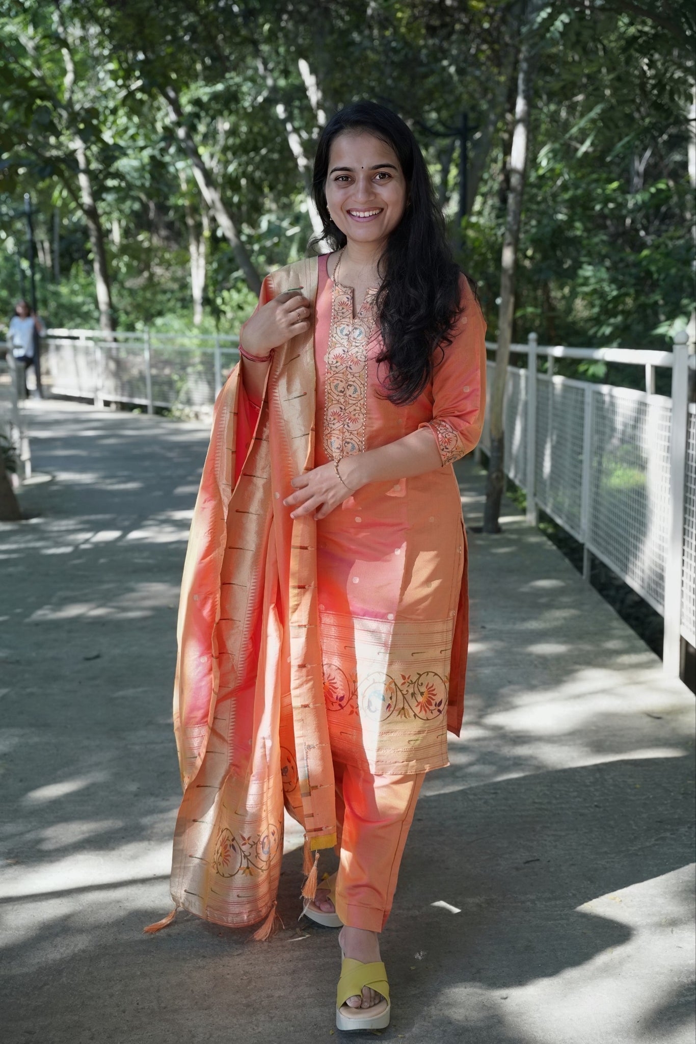 Product Highlights: Semi Paithani Dress material - Top and Bottom