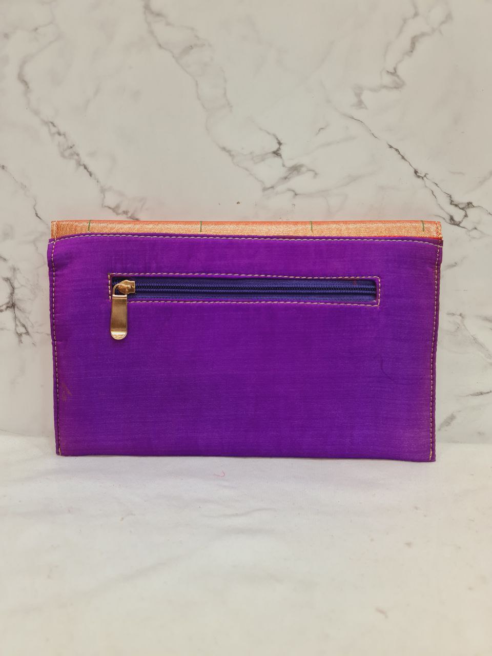 Important Note: All purses are made from all-over zari fabric, there may be some irregularity in the design and the design of the clutch/purse may not exactly match the picture provided on the website. position of the peacock and flowers may be different.